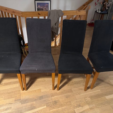 4 stk spisestoler med bruksmerker og et hull. Se bilder