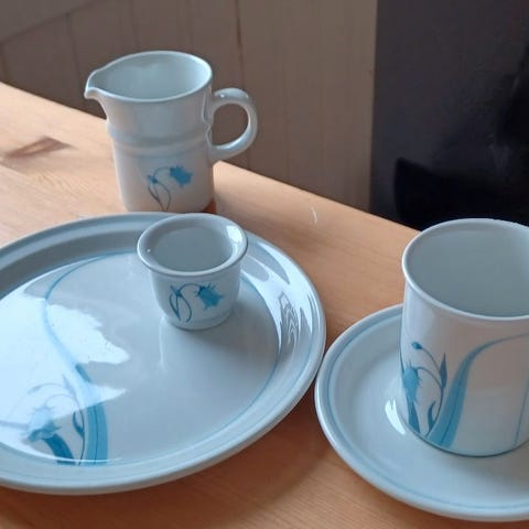 Noe slitasje/nag på et eggeglass, koppen til sukkeret og ene kaffekoppen men ikke vært til sjenanse for oss (se siste bildet)