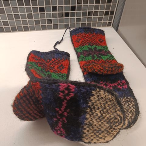 Nydelig håndlaget strikket kosesokker str 38-39 . Har også en andre tradisjonelle moster før leste bilder. Selges per par 350 kr eller samlet 600 kr