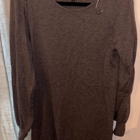Finstrikket kjole i myk ull og bomullsblanding. Str small.