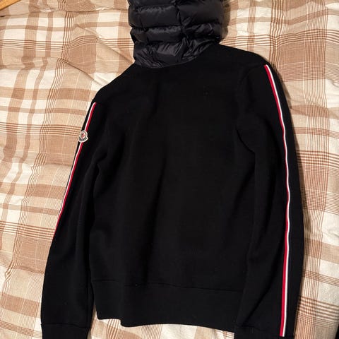 Stone Island genser i størrelse M, farge svart/mørke blå og laget av ull. Genseren har et lite hull på baksiden men synes nesten ikke. Genseren har en ribbestrikket struktur og en rund hals. Den har Stone Island-logo på armen som et karakteristisk merke. Pris kan diskuteres ved rask handel