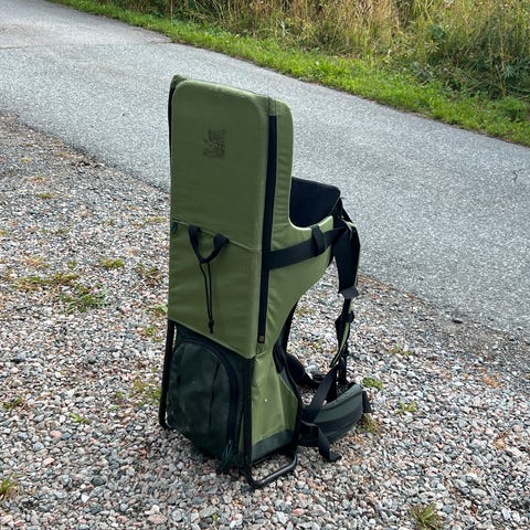 Meget god og brukervennlig bæremeis med gode stropper for støtte. Det er oppbevaring under barnets sete (i eget rom), og ellers nakkepute og sittepute for best komfort for barnet.