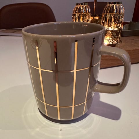 Selger denne så godt som ubrukte Marimekko-koppen «Ruudut» som ble lansert i forbindelse med Marimekkos 70-årsjubileum i 2021 og som ikke er i produksjon lengre.