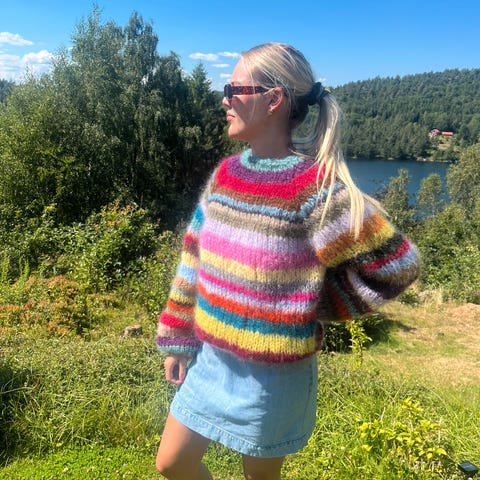 Nystrikket super myk, varm og god genser strikket med dobbelt garn: Min oppskrift, så her får du en genser ingen andre har🩷