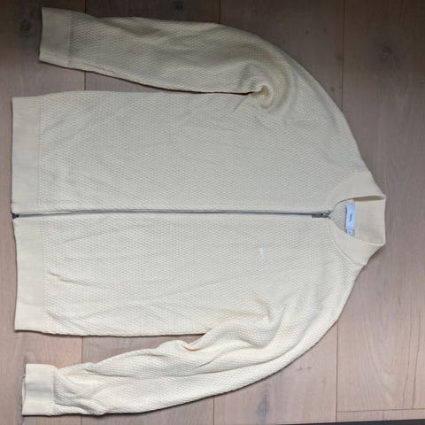J. Lindeberg ullgenser i lyse blå/grå farge, for herre. Genseren har V-hals og er laget av 100% ull. Den er i veldig god stand med unntak av den løse tråden på halsen bak nakken. Sjekk de siste bildene, prisen er derfor redusert.