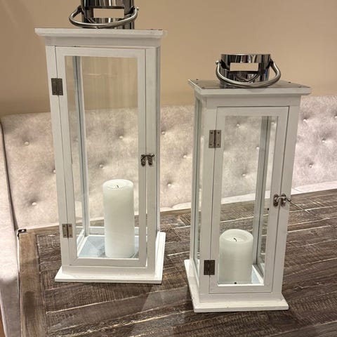 Lykt i hvit tre og sølv 2 stykker