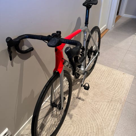 Selger en vanvittig rå Time Alpe D´Huez Disc i størrelse large. Sykkelen har nye SRAM Force AXS E1 gruppe med wattmåler og Campagnolo Bora WTO (C23) hjulsett (45 foran og 65 bak).