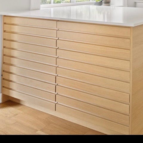 1x 40cm skuffeseksjon til 2 skuffer +en fast front (til venstre for ovn)