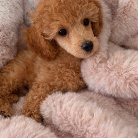 Alba er en rolig, trygg og sosial liten maltipoo-tispe som nå søker sitt rette hjem. Hun vokser opp hjemme hos oss i et varmt og stabilt miljø, og er vant til kos, håndtering og det som hører hverdagen til.