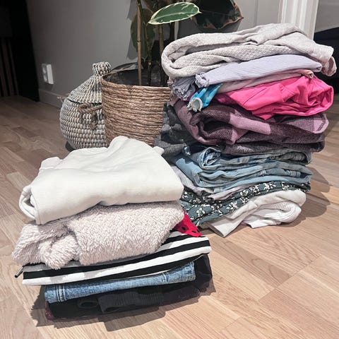 Den gule genseren er i 158/164 og har maling på armen. Følger gratis.