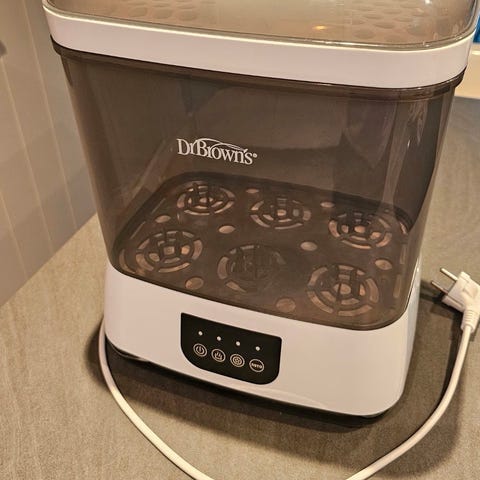 Praktisk flaskevarmer fra Babyono med en innebygd sterilisator.