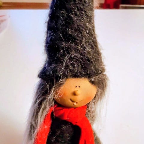 Julepynt – nissejente med and. Søt dekorasjon til hyllen eller bordet.