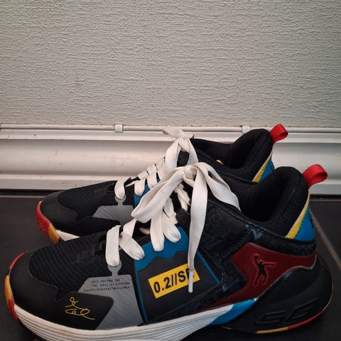 Jordan Air Jordan 1 Mid basketballsko i blå og svart farge. Skoene er i størrelse 38 og egnet for barn. Materialet er en kombinasjon av tekstil og syntetisk materiale. Skoene har borrelåsrem og snøring for justerbar passform. Sålen har mønster for godt grep.