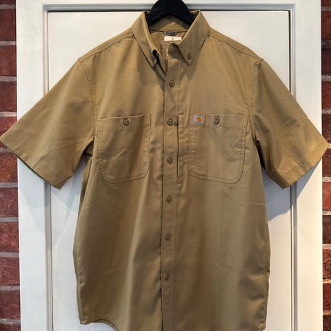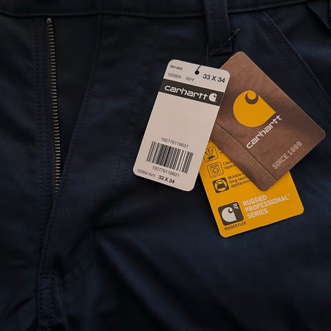 Sjefspakke med Carhartt-klær for rette vedkommende. Alt utenom knappeskjorten og den brune LS-eb er i XXL. De to nevnte plaggene er i XL, men relativt store i størrelsen.