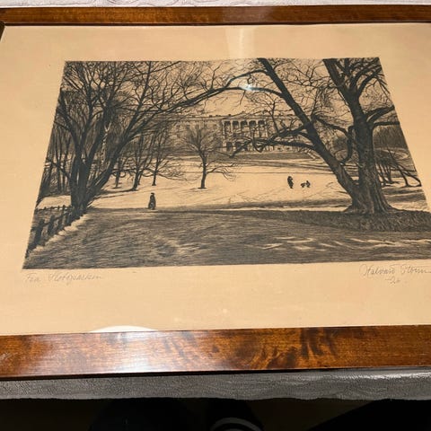 Til salgs er tre originale grafiske arbeider av Halvard Storm, en sentral skildrer av Bergen og vestnorsk byliv i mellomkrigstiden. Verkene representerer Storms modne periode og kombinerer dokumentarisk presisjon med et rolig, stemningsbåret uttrykk. Motivene har høy lokalhistorisk verdi og er blant kunstnerens mest etterspurte.