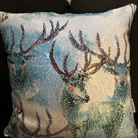 Meget pen. Stått på pynt i en liten periode. Puten er 60 x 60 cm. Selges med innhold. Selges for 350kr.Se gjerne mine andre annonser