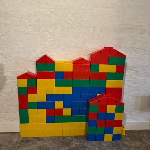 Stora byggeklosser i hardplast, 24 stk. Litt usikker på om de er ifra Wader XXL.