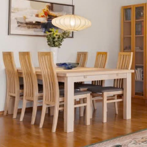 Tradisjonell spisestue i heltre – bord og 8 stoler