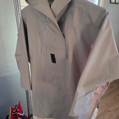 En lett og deilig regnponcho som er superpraktisk for norske forhold. Jakken er vindtett, har en vannsøyle på 20 000 og tåler kraftig regn, samtidig som den puster. Ponchoen har justerbar hette samt lomme med glidelås foran. Oversized passform med a-shape samt splitter på sidene. Jakken har teipete og forseglede sømmer som sørger for at vann ikke lekker gjennom. God jakkelengde til ca midt på låret.
