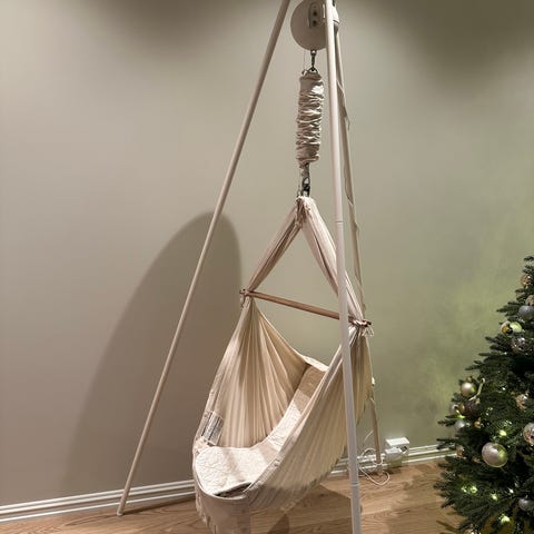 Moonboon av merket Natures sway. Følger med oppheng til dør og trinse til festing av sno, for manuell vugging.