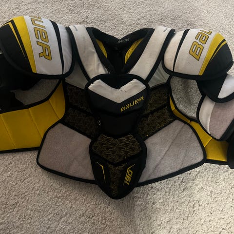Bauer Nike Ishockey skulderbeskyttelse i størrelse jr. M/M. Beskyttelsen er laget med Dri-FIT materiale for fukttransport og komfort under bruk. Designet for ishockey med polstrede skuldre og brystbeskyttelse. Passer ca høyde 1.35-1.45