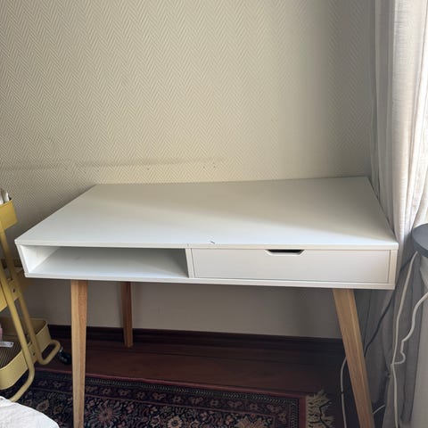 Skrivebord vurderes solgt, kjøpt fra møbelbutikk, pent behandlet, ene håndtaket som står på skapdøren er dessverre knekt, litt ukurant mål på dette, så har ikke klart å finne noe nytt.