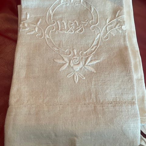Gamle hvite broderte putetrekk