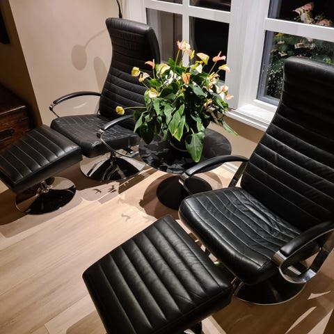 Veldig fint Conform Air lenestol til salgs. Stol er i lys grå stoff, har vipp, sving funksjon og justerbar nakkestøtte.