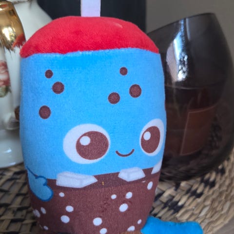 Kuromi (rosa), Pochacco (lysegrønn) og Cinnamoroll (lyseblå).