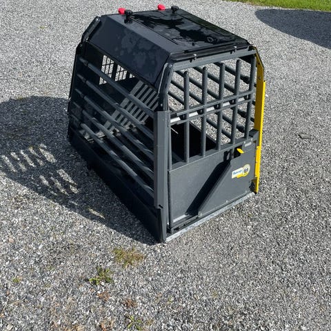 Luftig bur med metallås, kan åpnes fra flere sider som gjør det ekstra sikkert ved ulykker.