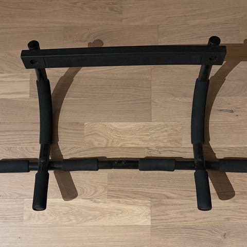 Pull-up bar som kan monteres i dørkarm. Laget av metall med skumgummi håndtak for bedre grep. Passer til trening av overkropp og armer.