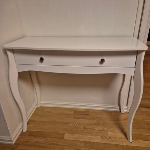 Selges med tungt hjerte. Gråmalt eldre skrivebord/skrivepult. Kan enkelt deles i tre deler. Har ikke nøkler.