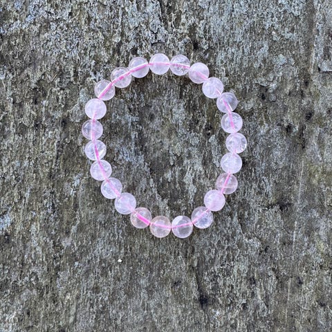 Perlene måler ca 8 mm, det er benyttet dobbel elastisk tråd.