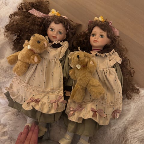 2 Fine porselens dukker med stativ selges samlet for 200 kr