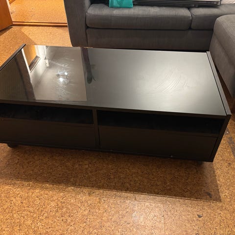 Midtre hylle er av glass. Bordet er i pen stand, ingen klare bruksmerker. Er noen år gammel, så litt usikker på hvilken modell fra IKEA det er.