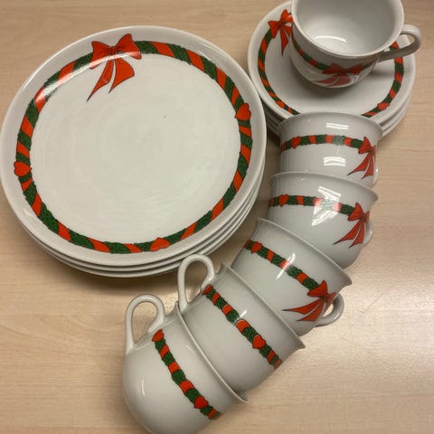 Til 6 personer, 18 deler. I fin stand. Kan sendes mot at kjøper betaler frakt. Pakker godt.