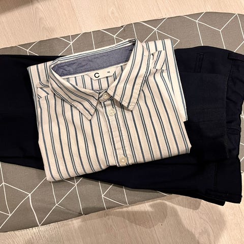 Ny med lapp, den grå er lappen fjernet og bukse prøvd på.