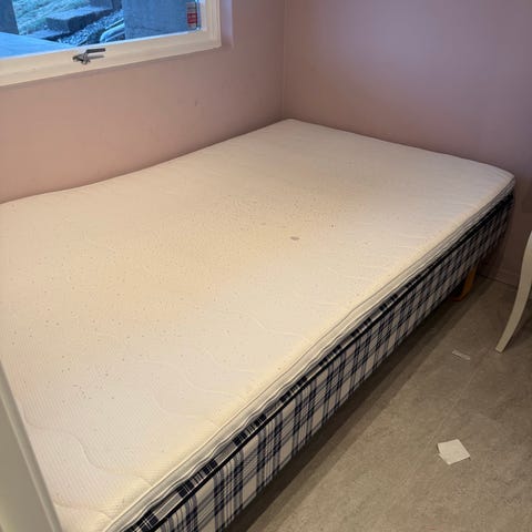 Madrassen er i underkant av 1 år gammel. Det er benyttet beskyttelsestrekk, så den ser helt fin ut.