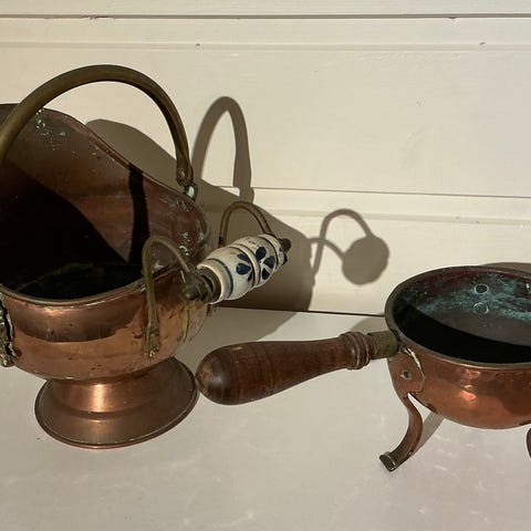 Velgi gamle lysestaker i messing og et gammelt drikkekar (kjenge) selges. Bud ønskes, kan sendes