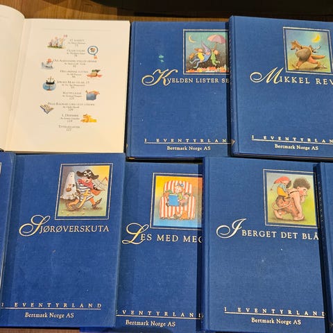 Eventyrland bokserie bestående av flere bind med klassiske eventyr, dyrefortellinger, spesielle og morsomme fortellinger, sanger og dikt, og godnatt-historier. Bøkene er samlet i en serie med blå omslag og gullskrift.