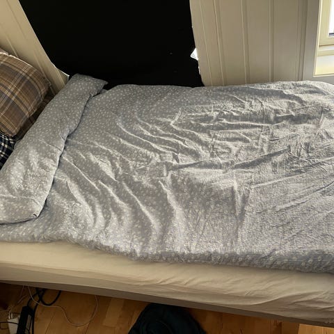 Som ny 120x200 seng. God bort da jeg ikke har plass til den i leiligheten og reiser på ferie i morgen. Må ha de ute av boden min som skal flyttes ut av i dag. Førstemann til mølla