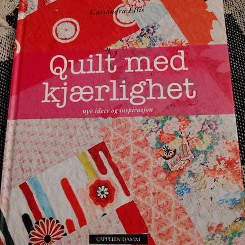 Quilt med kjærlighet bok med mønstre og prosjekter for quilting. Inneholder ulike design og veiledninger for å lage quiltearbeider. Selges kr 50,-