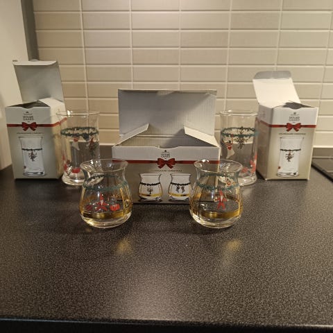 Holmegaard julevannglass selges. 425,- pr stk. Har 6 stk med samme motiv og kan vurdere å selge alle.