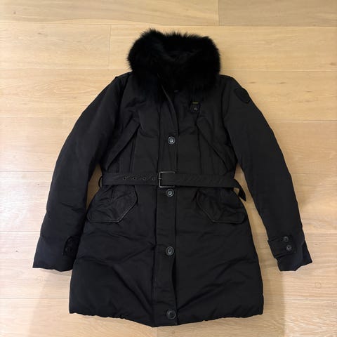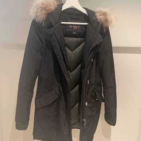 Varm og god dunjakke med ekte pels på kragen.