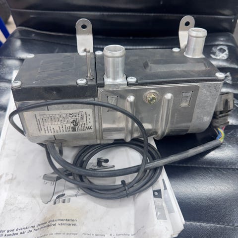 Eber Hydronic D5WSC vannvarmer Ubrukt i original eske fra 2017. Kun prøvekjørt/testet 1 time. Selges komplett med ledningsnett, rustfritt feste og lydpotte .eksosrør. Kr 9 000,-