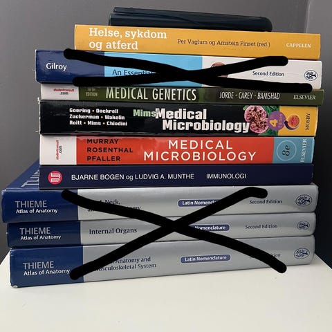 Selges samlet for 1500kr. Noen bøker har noe markeringer i seg. Ellers er de nesten ikke brukt da jeg endret studie planer underveis.