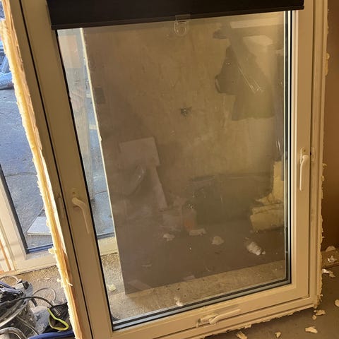 Vinduet er midlertidig montert i vegg, men selges grunnet feil.