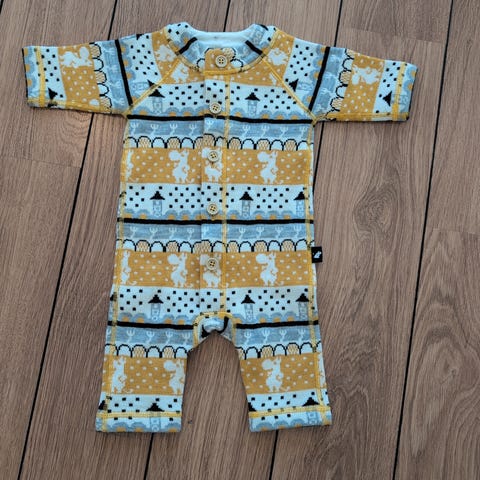 Reima Moomin ull babydress i størrelse 62/68 for unisex. Dressen har flerfarget mønster og er laget av ullmateriale som gir varme og komfort (50% ull)