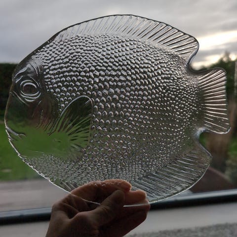 Selve fatet er i klart glass, men det lekre mønsteret er i frostet glass.