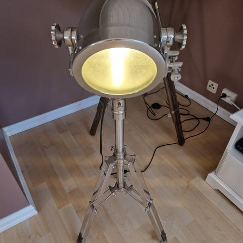 – Materiale: Bioplast (PLA), (PETG) for base, Stoffledning. Kork under føtter, Stål inne i lampefot for ekstra vekt.